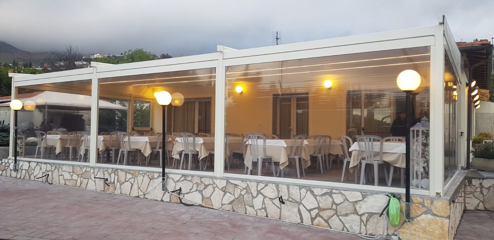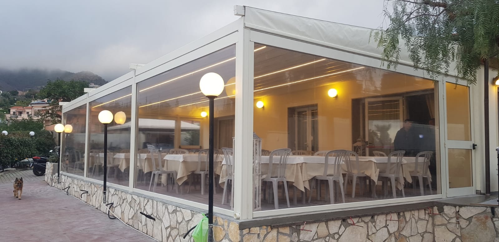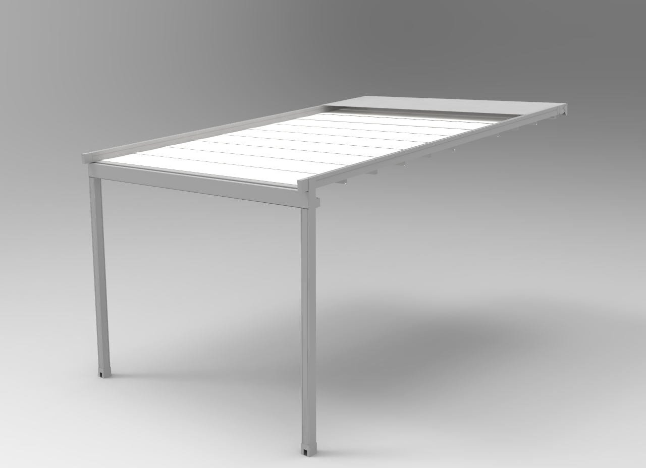 Modello fornito di motore elettrico, trasmettitore e gronda con deflusso acque sui piantoni.