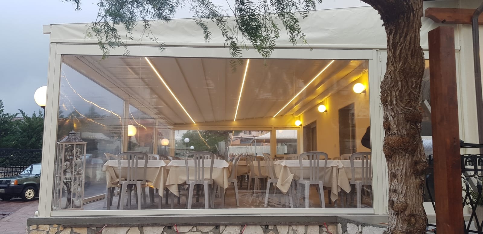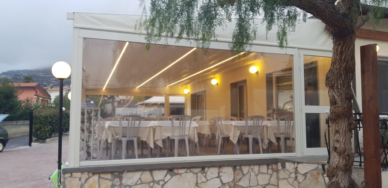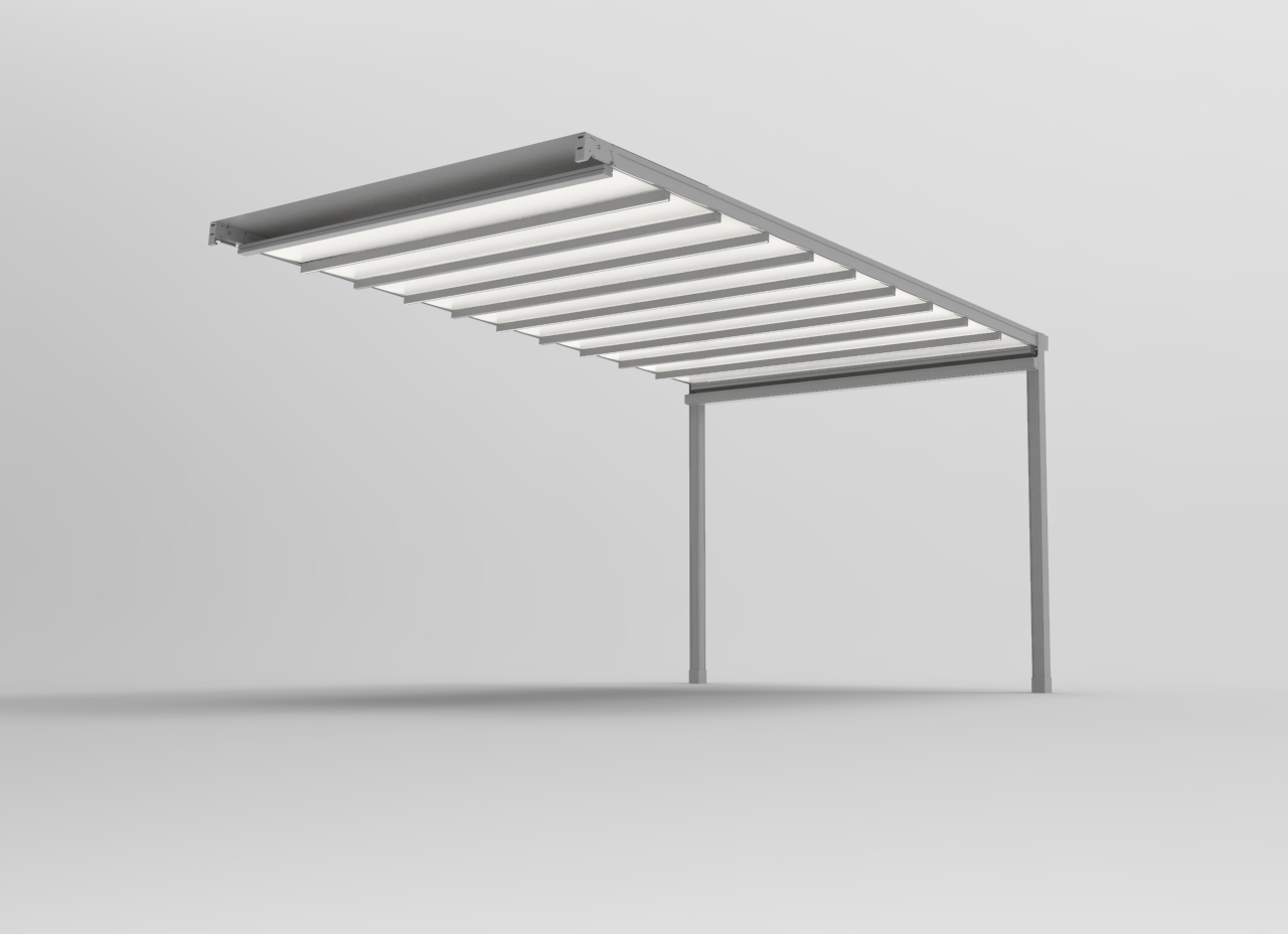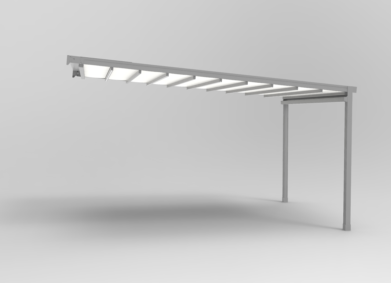 Struttura Ombreggiante in alluminio con tenda richiudibile ad impacchettamento,